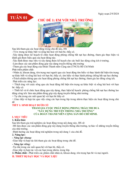 CHỦ ĐỀ 1: EM VỚI NHÀ TRƯỜNG