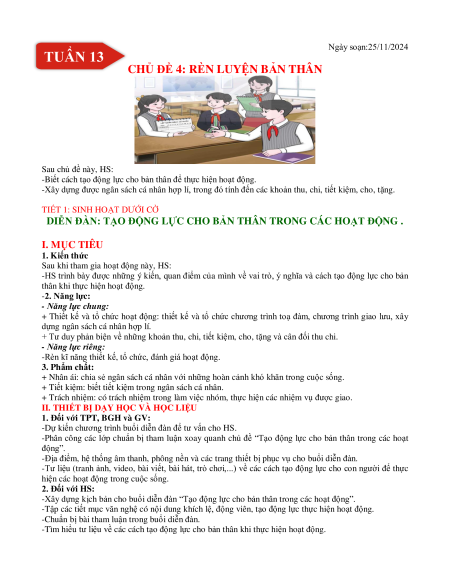 Ngày soạn:25/11/2024 TUẦN 13