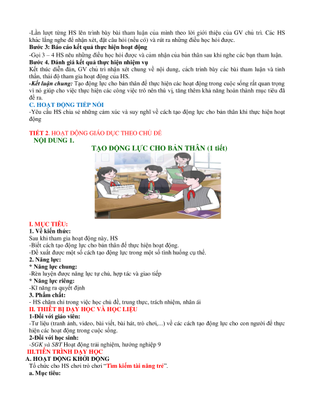 TIẾT 2. HOẠT ĐỘNG GIÁO DỤC THEO CHỦ ĐỀ NỘI DUNG 1.