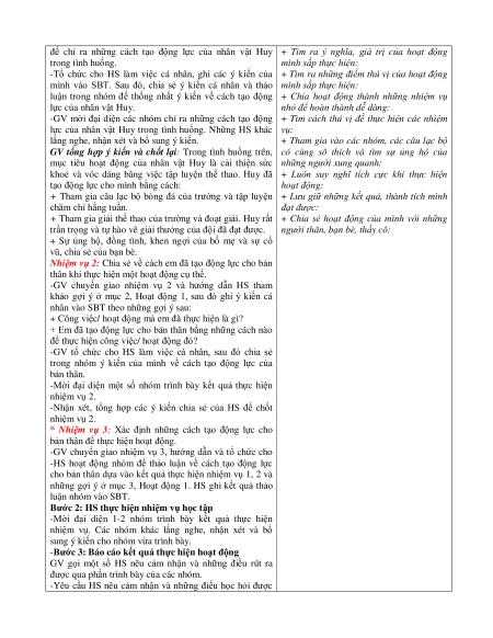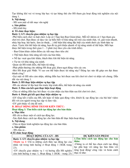 -Xác định được cách tạo động lực cho bản thân để thực hiện hoạt động. b. Nội dung: