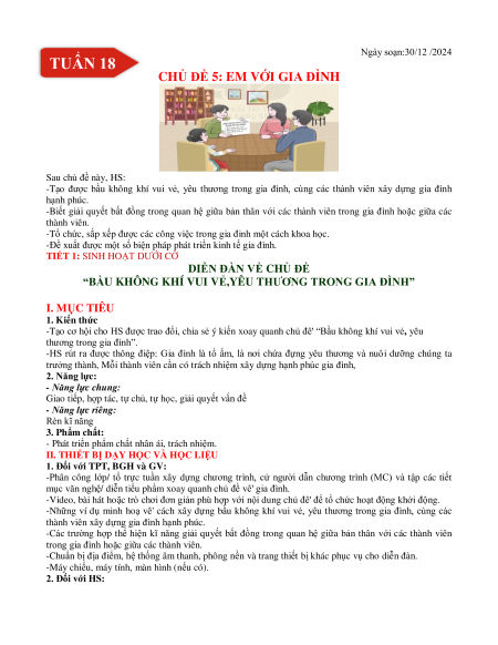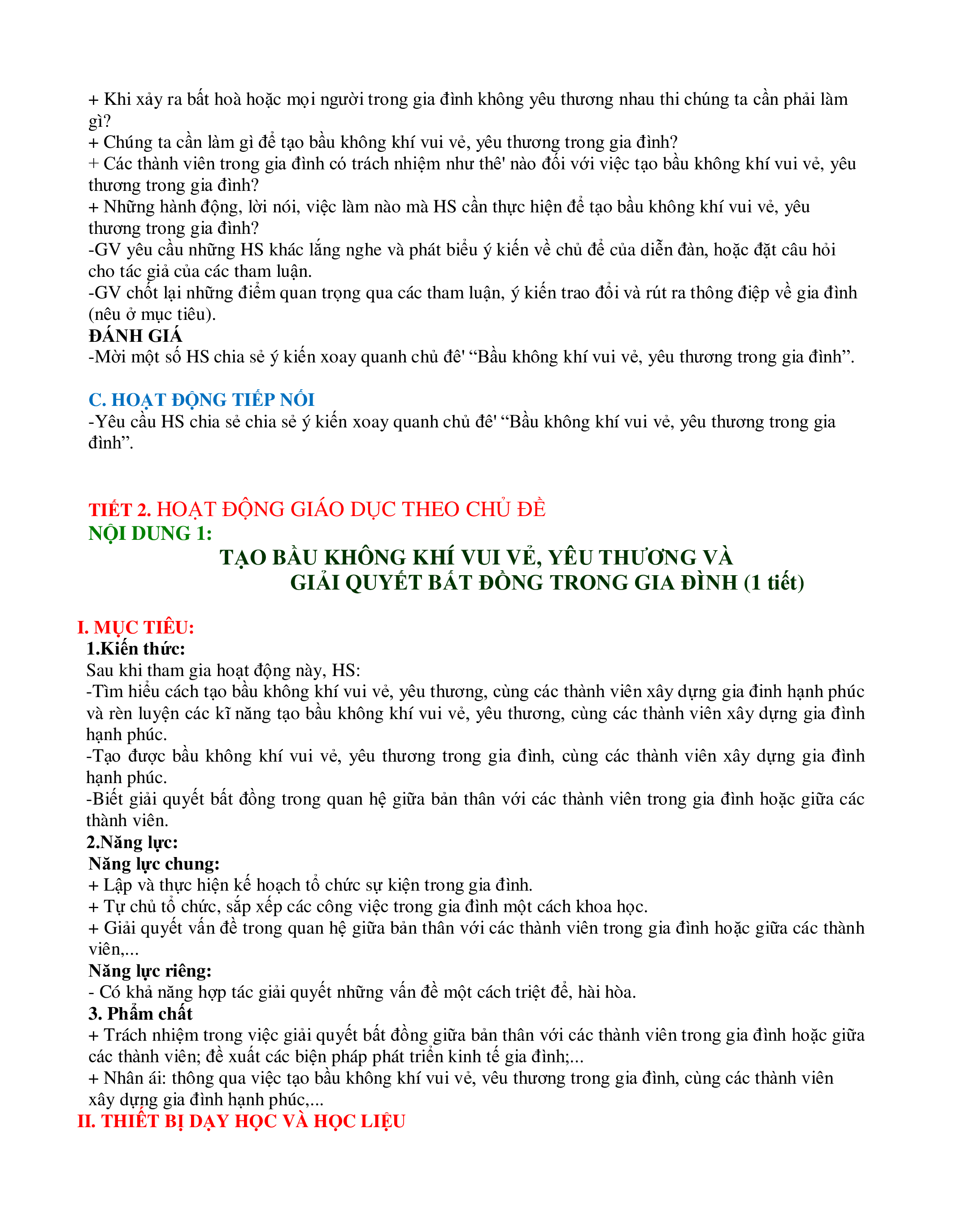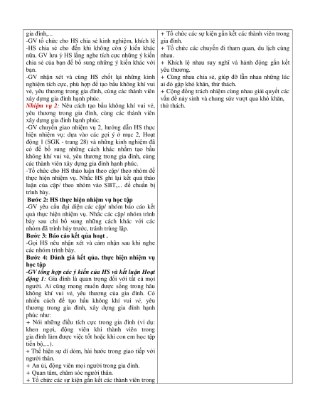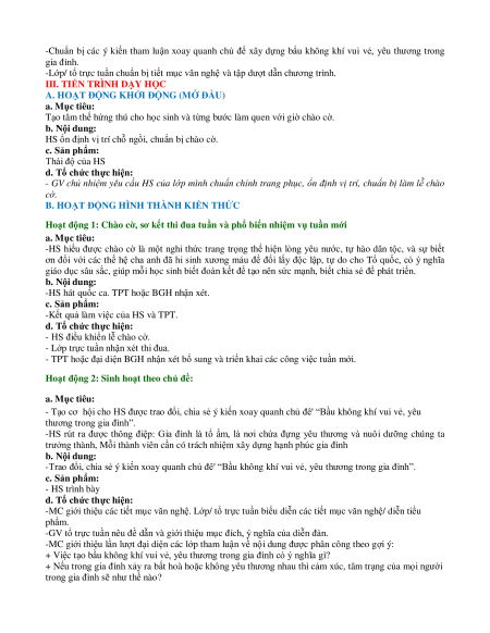 -Tạo cơ hội cho HS được trao đổi, chia sẻ ý kiến xoay quanh chủ đê' “Bầu không khí vui vẻ, yêu thương trong gia đình”.