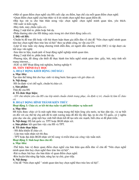 -Lưu ý: Ngoài hoạt động mang tính định hướng với nội dung như trên, các trường có thể tổ chức hoạt