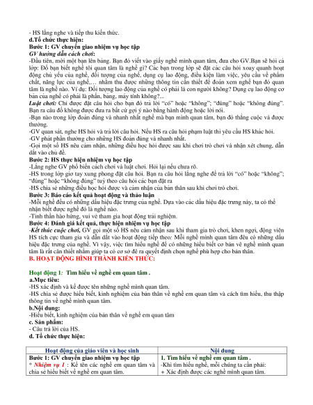 -Nêu được hoạt động đặc trung, trang thiết bị, dụng cụ lao động của những nghề mà mình quan tám.
