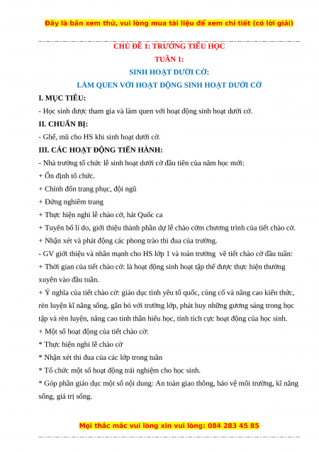 CHỦ ĐỀ 1: TRƯỜNG TIỂU HỌC TUẦN 1: