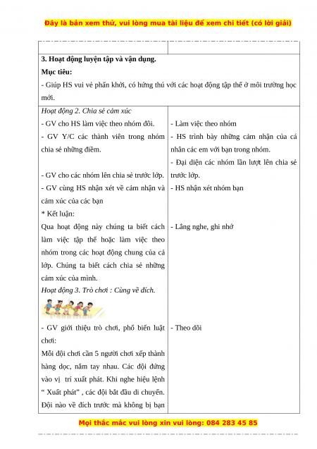 - Giúp HS vui vẻ phấn khởi, có hứng thú với các hoạt động tập thể ở môi trường học mới.