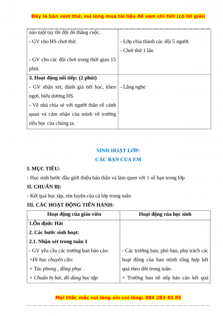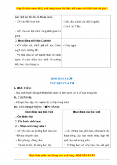 - Vui vẻ phấn khởi, có hứng thú với các hoạt động tập thể ở môi trường học mới. II. CHUẨN BỊ: