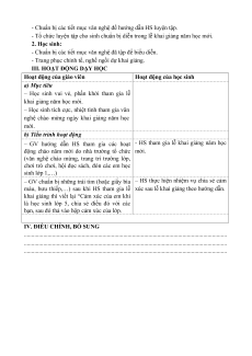 - GV nhắc nhở HS tuân thủ nề nếp khi tham gia hoạt động - HS chú ý thực hiện. tập thể. 3