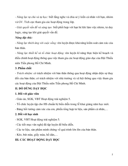 - Năng lực thiết kế và tổ chức hoạt động (viết rõ) 3. Phẩm chất: