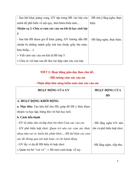 - GV phổ biến luật chơi: Quản trò nêu các cảm xúc khác tên và phổ biến luật chơi.
