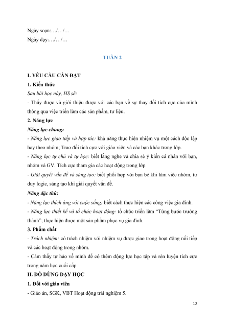 - Nhận diện được sự thay đổi của bản thân thông qua các tư liệu, các sản phẩm được lưu giữ. 2. Năng lực Năng lực chung: