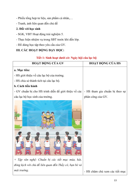 + Tập văn nghệ: Chuẩn bị các tiết mục múa, hát,