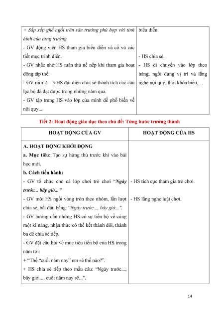bài học hôm nay nhé – Chủ đề 1 – Tiết 2: Hoạt
