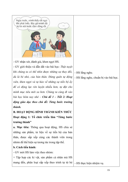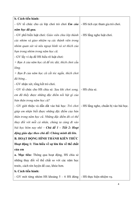 - HS chuẩn bị tâm thế sẵn sàng trước khi vào năm học mới. b. Cách tiến hành