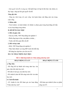 Tiết 1: Sinh hoạt dưới cờ: Chào mừng năm học mới HOẠT ĐỘNG CỦA GV HOẠT ĐỘNG CỦA HS a. Mục tiêu: