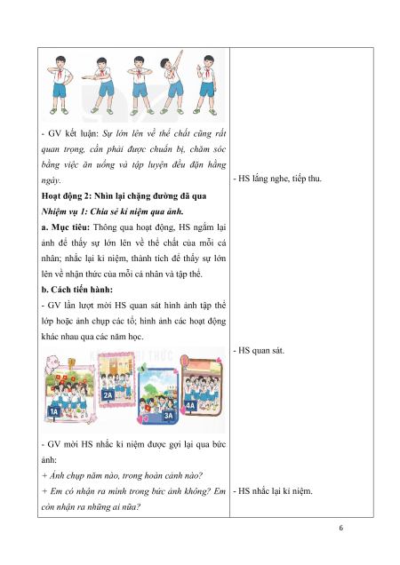 Hoạt động 1: Tìm hiểu về sự lớn lên về thể chất của em