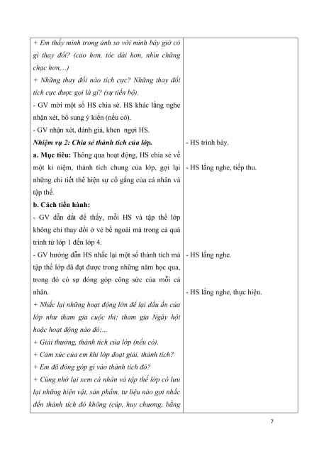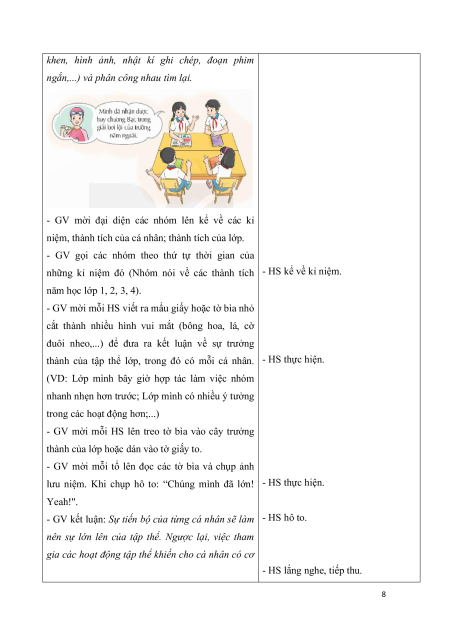 hay theo nhóm; Trao đổi tích cực với giáo viên và các bạn khác trong lớp.
