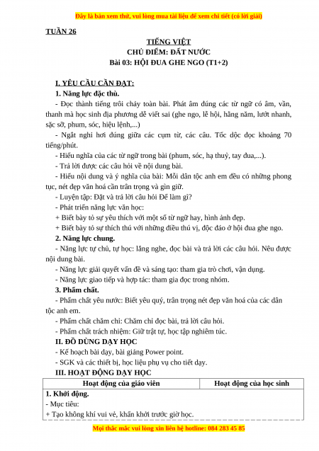 Bài 03: HỘI ĐUA GHE NGO (T1+2) I. YÊU CẦU CẦN ĐẠT: 1. Năng lực đặc thù.