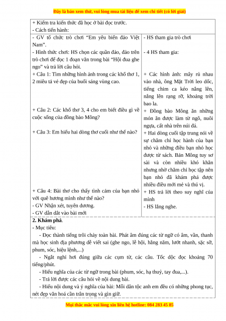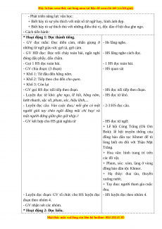 - Ngắt nghỉ hơi đúng giữa các cụm từ, các câu. Tốc dộc đọc khoảng 70 tiếng/phút.