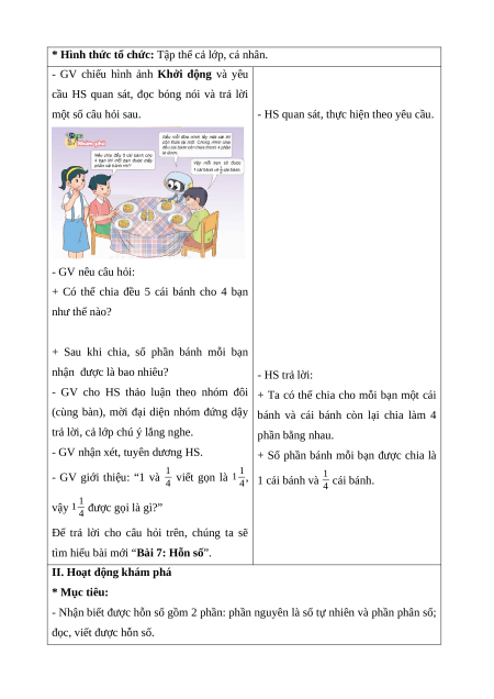 tìm hiểu bài mới “Bài 7: Hỗn số”.