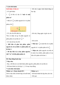 phần phân số của hỗn số 1 ?” 4 - HS trả lời: - GV tóm tắt lại cho HS: 1