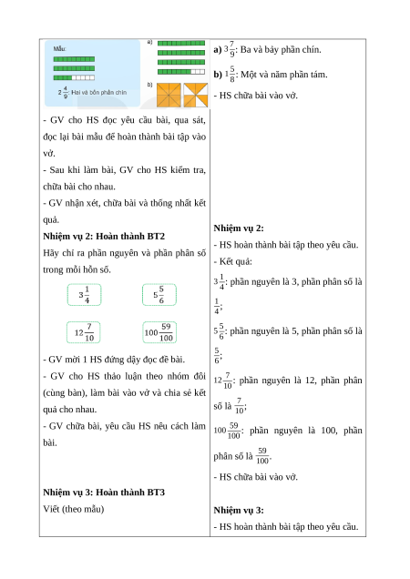 - Đọc, viết hỗn số; xác định được phần nguyên, phần phân số của hỗn số.