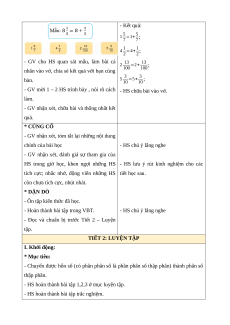 Hoạt động của học sinh Tiết 1: Hỗn số I. Khởi động: