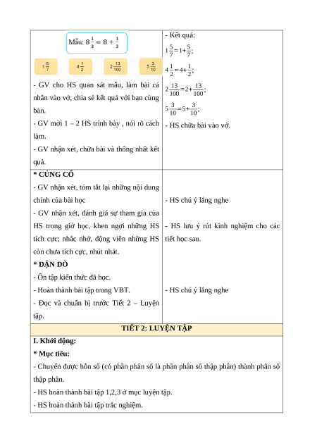 Giáo án Hỗn số Toán lớp 5 Kết nối tri thức