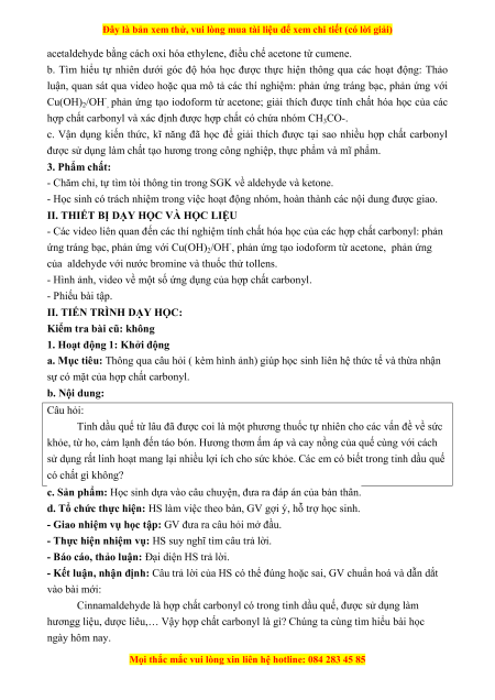 sự có mặt của hợp chất carbonyl. b. Nội dung: Câu hỏi:
