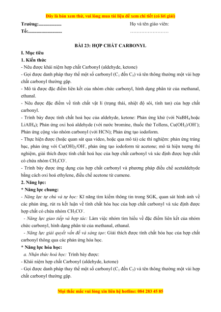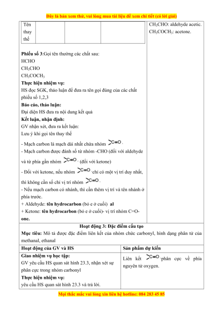 Đây là bản xem thử, vui lòng mua tài liệu để xem chi tiết (có lời giải) Tên CH3CHO: aldehyde acetic. thay CH3COCH3: acetone. thế