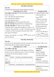 Giáo án Hợp chất carbonyl Hóa học 11 Kết nối tri thức