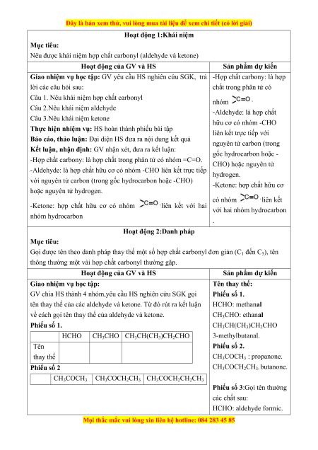 Đây là bản xem thử, vui lòng mua tài liệu để xem chi tiết (có lời giải) Hoạt động 1:Khái niệm Mục tiêu: