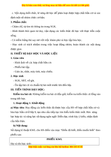 số hợp chất HS chưa biết. d) T ch ổ ức thực hi n: ệ Giao nhi m ệ v h ụ c ọ t p ậ : HS làm vi c t ệ heo bàn, hoàn thi n phi ệ u K ế – W – L. Thực hi n nhi ệ m ệ v : ụ HS hoàn thi n ph ệ i u ế theo bàn.