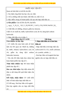 ochloric acid, đá vôi, dung d ch s ị odium hydroxide. 3. H p ch ợ ất h u c ữ ơ có ch a: ứ C. Hoạt đ ng c ộ a G ủ V và HS N i ộ dung Giao nhi m ệ v h ụ c t ọ p: ậ I. H p ch ợ t ấ h u c ữ và hoá h ơ c ọ - GV chi u ế lên màn hình m t