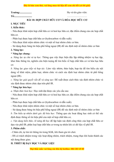Đây là bản xem thử, vui lòng mua tài liệu để xem chi tiết (có lời giải) Trường:................... Họ và tên giáo viên: