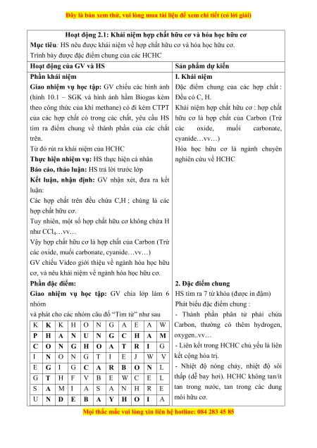 cầu cho HS muốn tìm hiểu về hợp chất hữu cơ và hóa học hữu cơ. b) Nội dung: