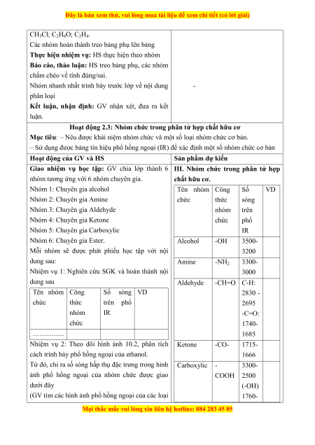 Hoạt động 2.3: Nhóm chức trong phân tử hợp chất hữu cơ