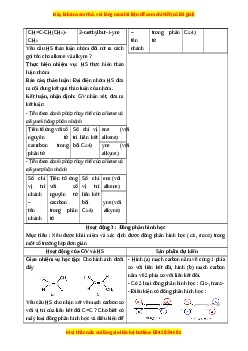 số nguyên tử trí liên kết alkene) CH2=CH2 Ethene (Ethylene) cacrrbon trong bội C≥4) yne (với CH2=CH-CH2-CH3 But-1-ene phân tử alkyne) CH≡CH Ethyne (Acetylene)