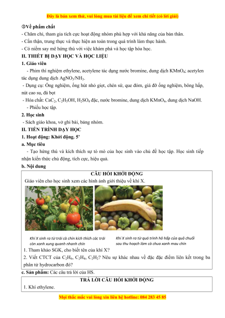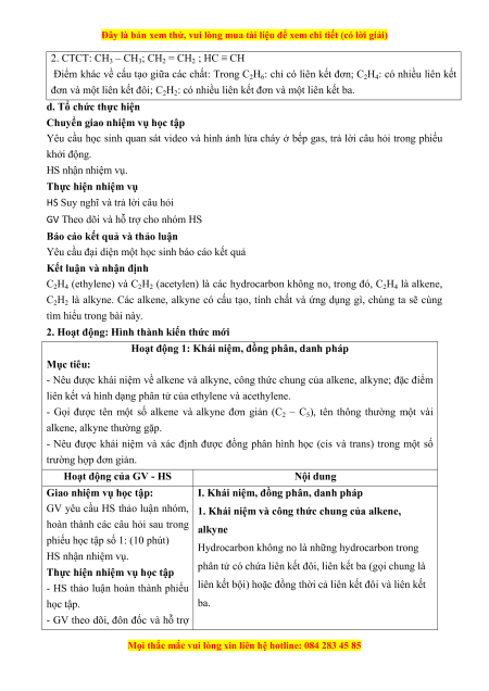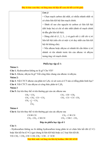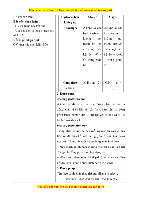 Đây là bản xem thử, vui lòng mua tài liệu để xem chi tiết (có lời giải) HS khi cần thiết. Hydrocarbon Alkene Alkyne Báo cáo, thảo luận không no