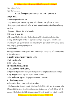 BÀI: KẾ HOẠCH CHÍ TIÊU CÁ NHÂN VÀ GIA ĐÌNH I. M C Ụ TIÊU 1. Mức đ / ộ yêu c u c ầ n đ ầ t ạ - Giúp HS làm quen v i ớ vi c xây d ệ ng m ự t ộ k ho ế ch đ ạ n ơ gi n ả v t ề ài chính. - Áp d ng đ ụ ư c ợ các ki n t ế h c ứ v t ề s ỉ ố ph n t ầ răm vào nh ng v ữ n đ ấ c ể t ụ h t ể rong đ i ờ sống. - Giáo d c ý t ụ h c ứ chi tiêu có k ho ế ch. ạ