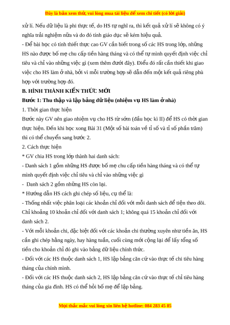 Đây là bản xem th , vu ử i lòng mua tài li u ệ đ xe ể m chi ti t ế (có l i ờ gi i ả ) x l ử í. N u ế d l ữ i u l ệ à phi th c ự t , do H ế S t nghĩ ự ra, thì k t ế qu x ả l ử í s không có ý ẽ nghĩa tr i ả nghi m ệ n a và do đó t ữ ính giáo d c ụ s kém ẽ hi u qu ệ . ả - Đ bài ể h c ọ có tính thi t ế th c ự cao GV c n bi ầ t ế trong s các ố HS trong l p, nh ớ ng ữ HS nào đư c ợ b m ố chu ẹ c p t ấ i n hàng ề tháng và có th t ể m ự ình quy t ế đ nh vi ị c ch ệ ỉ tiêu và chỉ vào nh ng vi ữ c ệ gì (xem thêm đư i ớ đây). Đi u đó r ể t ấ c n t ầ hi t ế khi giao