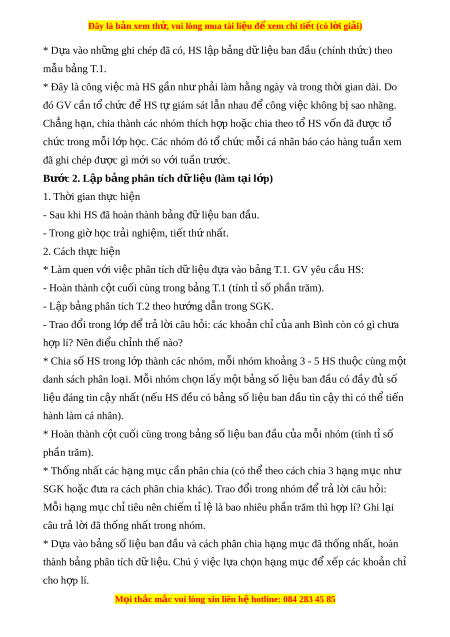 Đây là bản xem th , vu ử i lòng mua tài li u ệ đ xe ể m chi ti t ế (có l i ờ gi i ả ) * D a ự vào nh ng ghi ữ chép đã có, HS l p b ậ ng d ả ữ li u ban đ ệ u ( ầ chính th c) ứ theo mẫu b ng ả T.1. * Đây là công vi c m ệ à HS g n nh ầ ư ph i ả làm h ng ằ ngày và trong th i ờ gian dài. Do đó GV cần tổ ch c ứ đ H ể S t gi ự ám sát l n nhau ẫ đ công vi ể c không b ệ s ị ao nhãng. Ch ng h ẳ n,