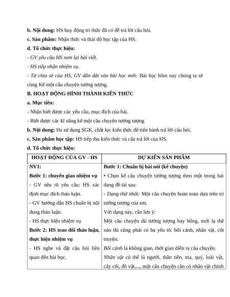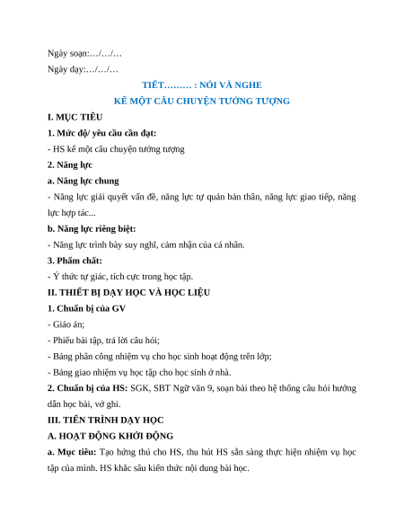 Giáo án Kể một câu chuyện tưởng tượng Ngữ Văn 9 Chân trời sáng tạo