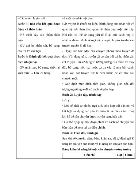 - Biết được các kĩ năng kể một câu chuyện tưởng tượng