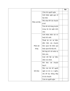 Bảng kiểm kĩ năng kể một câu chuyện tưởng tượng Tiêu chí Đạt Chưa đạt Chào hỏi người nghe