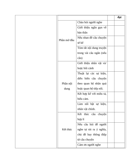 Sau khi kể chuyện, dùng bảng kiểm sau để tự đánh giá kĩ