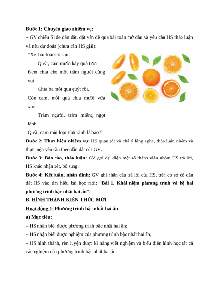 Bước 1. Chuyển giao nhiệm vụ: 1. Phương trình bậc nhất hai ẩn