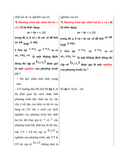 – Nhận biết được nghiệm của phương trình và hệ hai phương trình bậc nhất hai ẩn.