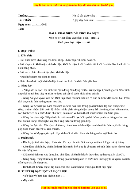 - Phân chia được một khối đa diện thành các khối đa diện đơn giản hơn. 2. Năng lực