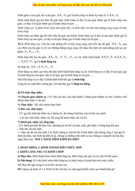 I. KHỐI LĂNG TRỤ VÀ KHỐI CHÓP
