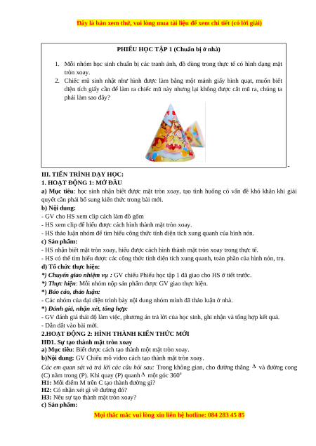 H3: Nêu sự tạo thành mặt tròn xoay? c) Sản phẩm: